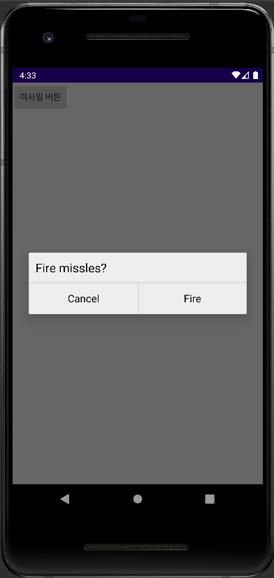 Toast.makeText(MainActivity.this, "미사일 발사", Toast.LENGTH_LONG).show();
